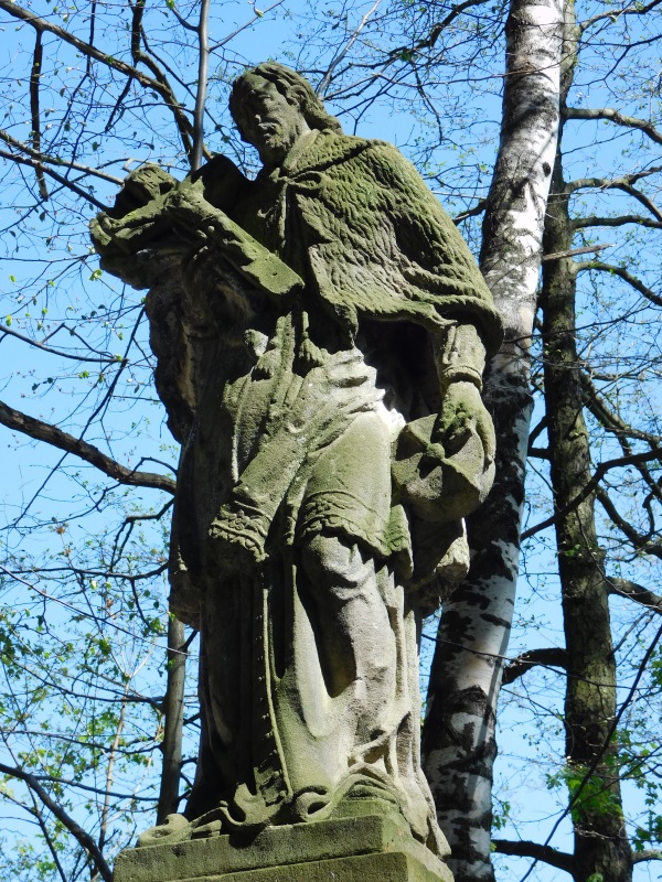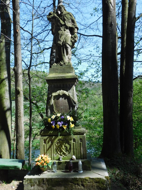 Przy ulicy Wiejskiej (zaraz za oczyszczalnią ścieków), na skraju lasu stoi figura św. Jana Nepomucena. To druga z lądeckich figur, zdecydowanie mniej znana od tej z mostu. Figurę ufundował jeden z lądeckich rzeźników jako wotum dziękczynne. Rozjuszony buhaj, prowadzony przez niego do rzeźni, miał ściągnąć go z wysokiej skarpy do płynącej u jej stóp Białej Lądeckiej. Cudownie ocalały rzeźnik zlecił wykonanie figury Henrykowi Klahrowi (według książki W. Ciężkowskiego Henryk był synem Ignacego Klahra, a wnukiem Michała).