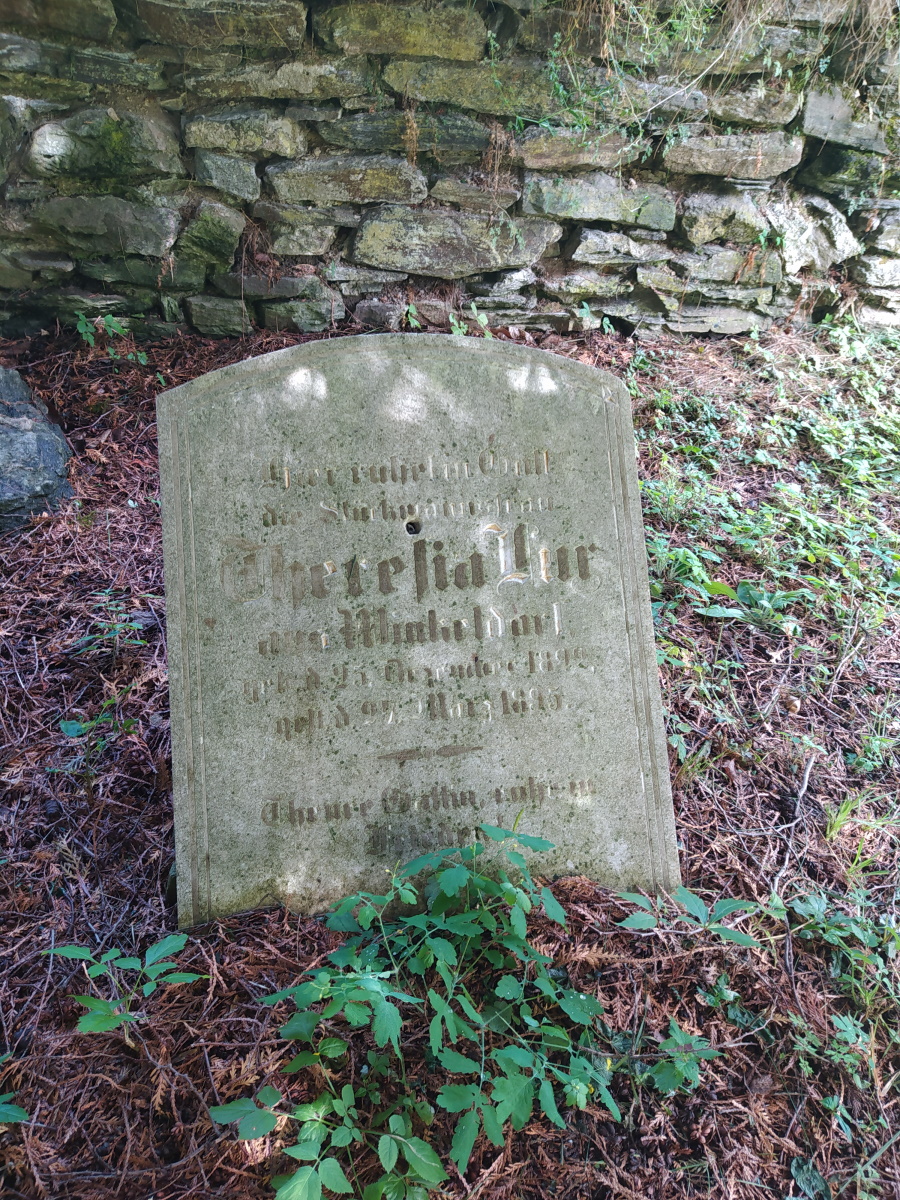 Lux Theresia Published 7 sierpnia 2022 at 900 × 1200 in Cmentarz w Kątach Bystrzyckich ← Previous / Next → Hier ruht in gott die Stückmannsfrau Theresia Lux aus Winkeldorf geb. d. 25. October 1822, gest. d. 27. März 1895. — Theure Gattin, ruhe in Frieden!