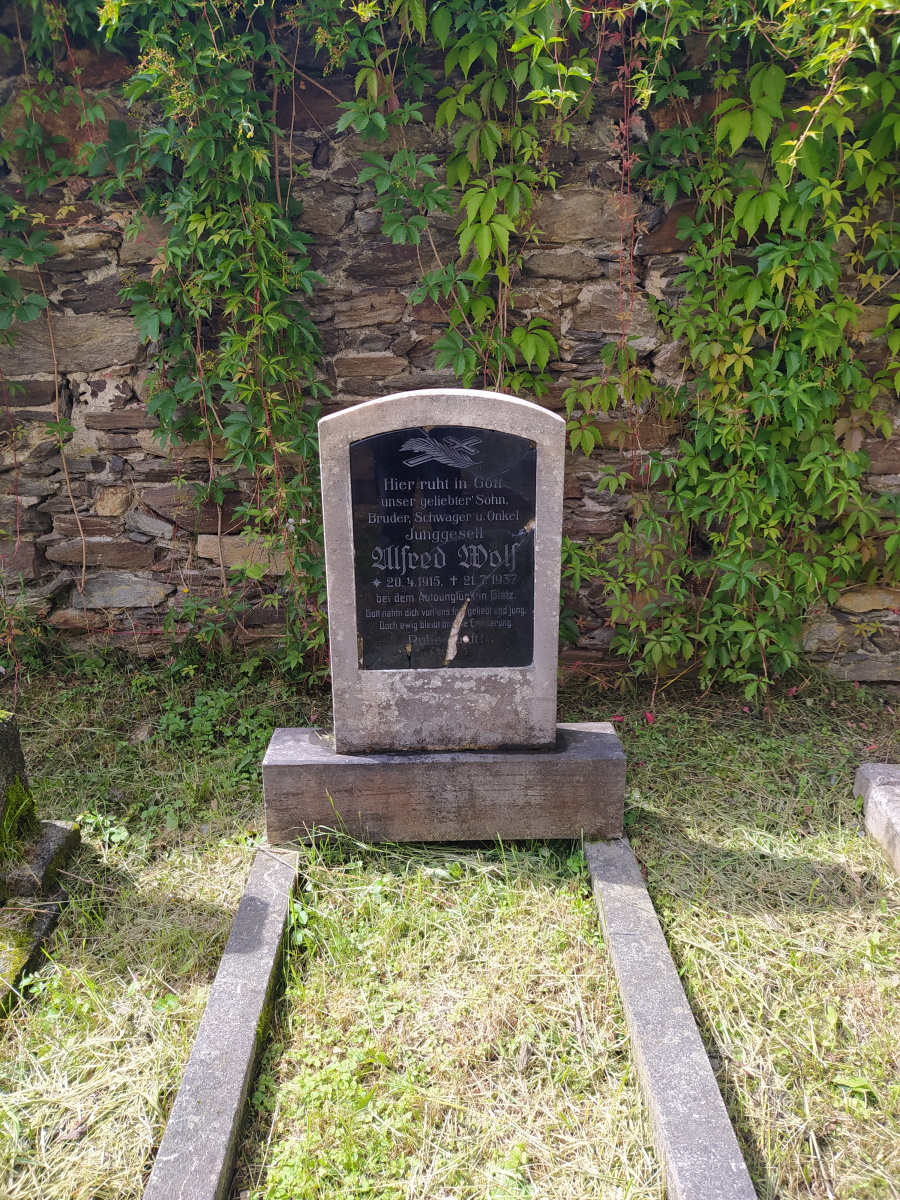 Wolf Alfred Published 8 sierpnia 2022 at 900 × 1200 in Cmentarz w Kątach Bystrzyckich ← Previous / Next → Hier ruht in Gott unser geliebter Sohn, Bruder, Schwager u. Onkel Junggesell Alfred Wolf * 20.4.1915, + 21.7.1937 bei dem Autounglück in Glatz. Gott nahm dich von uns fo[…]geliebt und jung, Doch ewig bleibt uns […]e Erinnerung. Ruhe sanft!