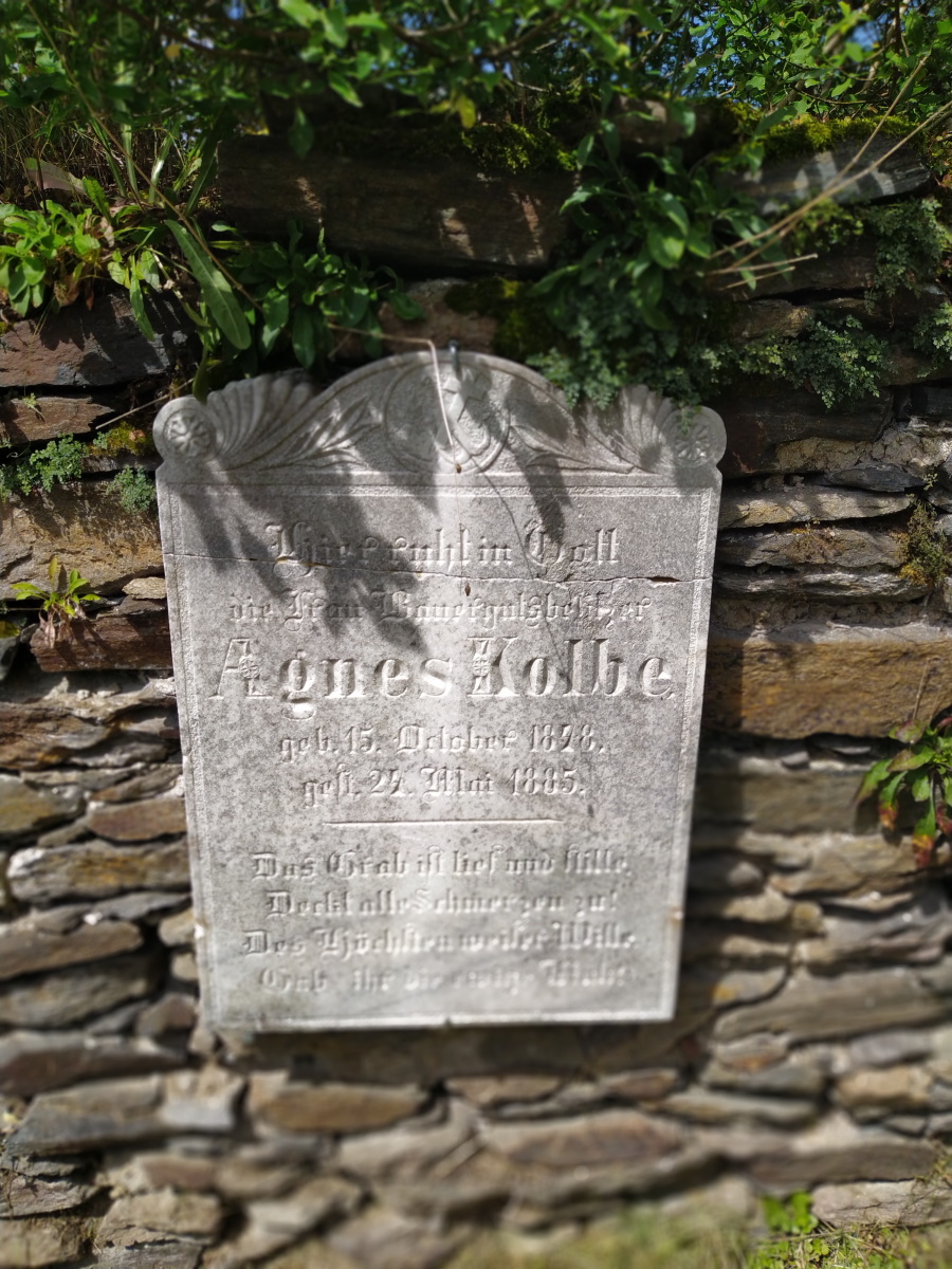 Kolbe Agnes Published 8 sierpnia 2022 at 900 × 1200 in Cmentarz w Kątach Bystrzyckich ← Previous / Next → Hier ruht in Gott die Frau Bauergutzbesitzer Agnes Kolbe geb. 15.October 1848, gest. 24.Mai 1885. — Das Grab ist tief und stille, Deckt alle Schmerzen zu! Des Höchsten weiser Wille, Gab ihr die ewige Ruh!
