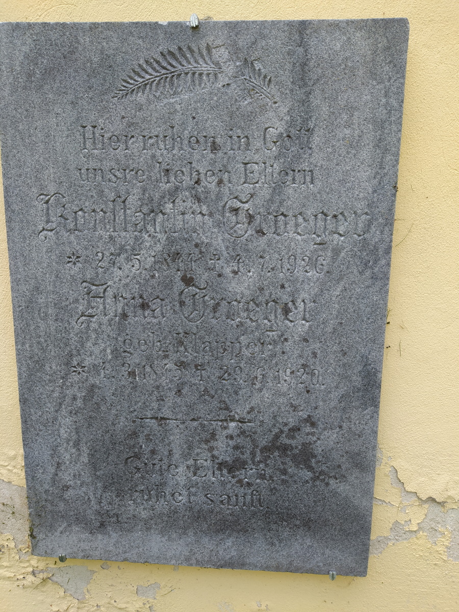 Groeger Anna Published 9 sierpnia 2022 at 900 × 1200 in Cmentarz w Kątach Bystrzyckich ← Previous / Next → Hier ruhen in Gott unsere lieben Eltern Konstantin Groeger * 27.5.1844 + 4.7.1926. Anna Groeger geb. Klapper * 4.3.1845 + 29.6.1920. — Gute Eltern ruhet sanft
